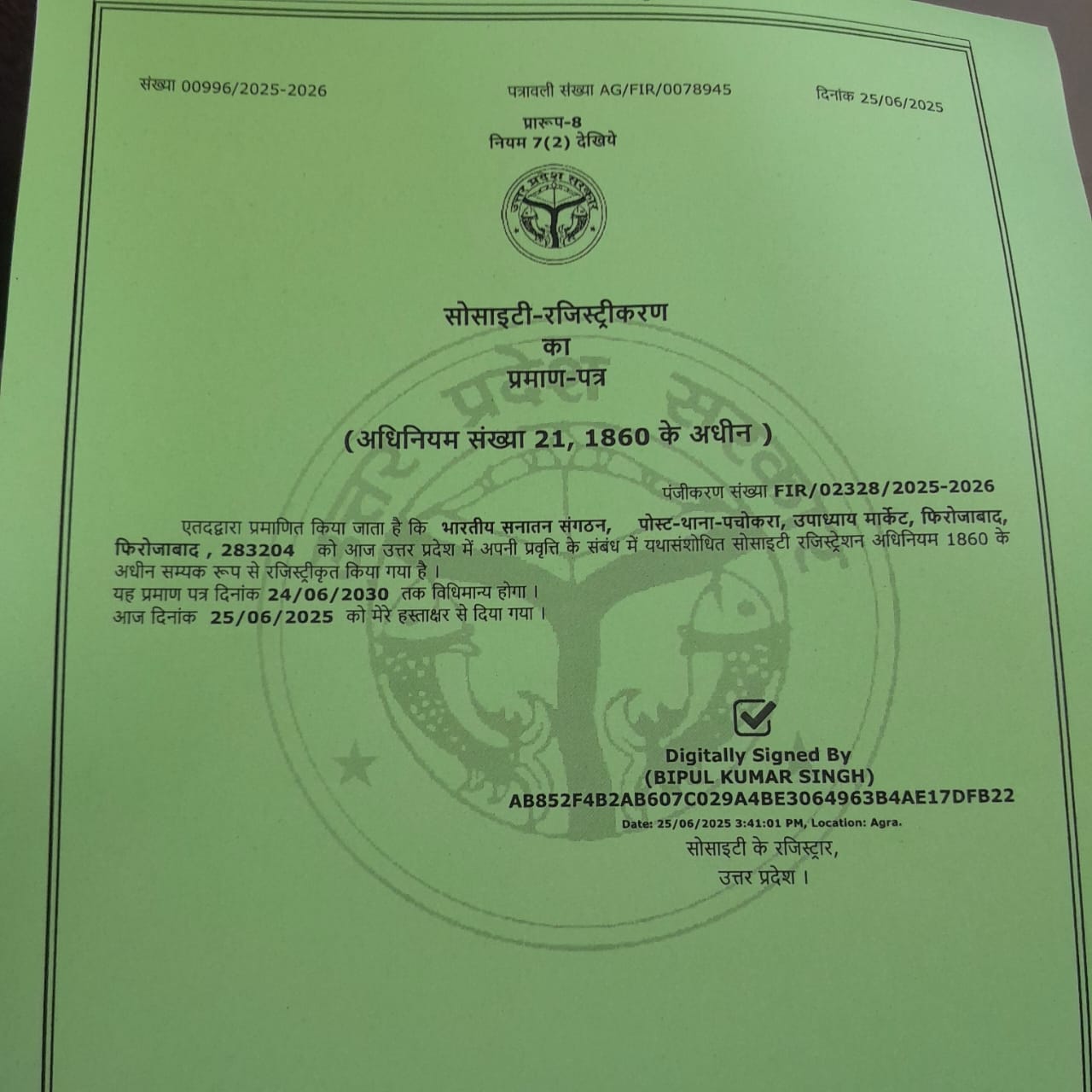 अध्यक्ष शिशुपाल सिंह हिन्दू सनातन संगठन के लिए समर्पित एक महान समाजसेवी हैं, जिन्होंने समाज उत्थान के क्षेत्र में उल्लेखनीय कार्य किए हैं। उनका जीवन हमेशा धर्म रक्षा, सामाजिक न्याय और राष्ट्रीय मूल्यों की स्थापना के लिए समर्पित रहा है। शिशुपाल सिंह ने हिन्दू सनातन संगठन के अध्यक्ष के रूप में संगठन को मजबूत किया और युवाओं को धर्म व संस्कृति के प्रति जागरूक किया। उनके नेतृत्व में कई धार्मिक जागरूकता अभियान, सांस्कृतिक कार्यक्रम और समाज सुधार योजनाएं शुरू हुईं। उन्होंने गरीबों की शिक्षा, स्वास्थ्य तथा आपदा राहत कार्यों में सक्रिय भूमिका निभाई।